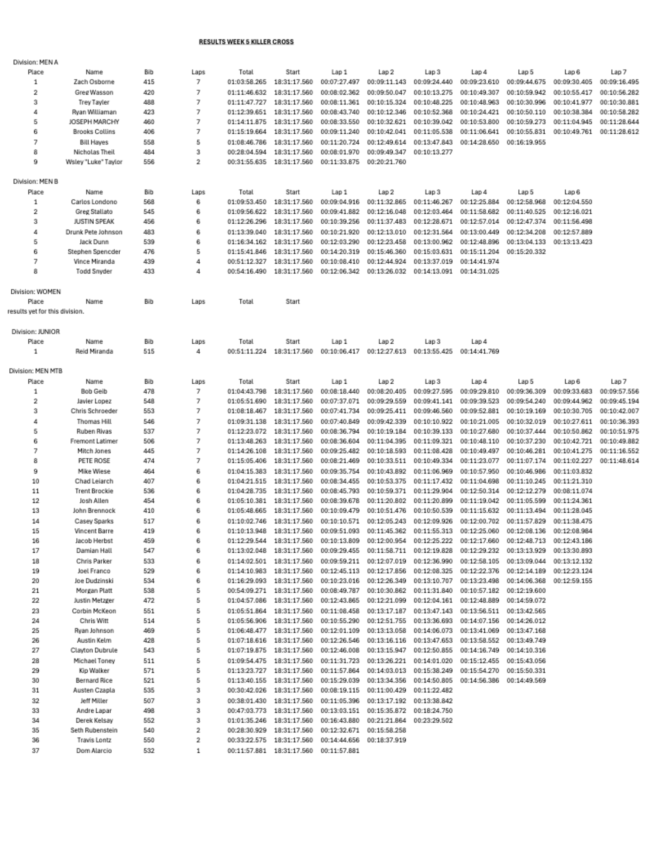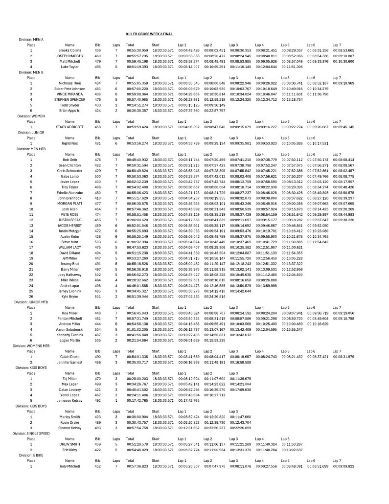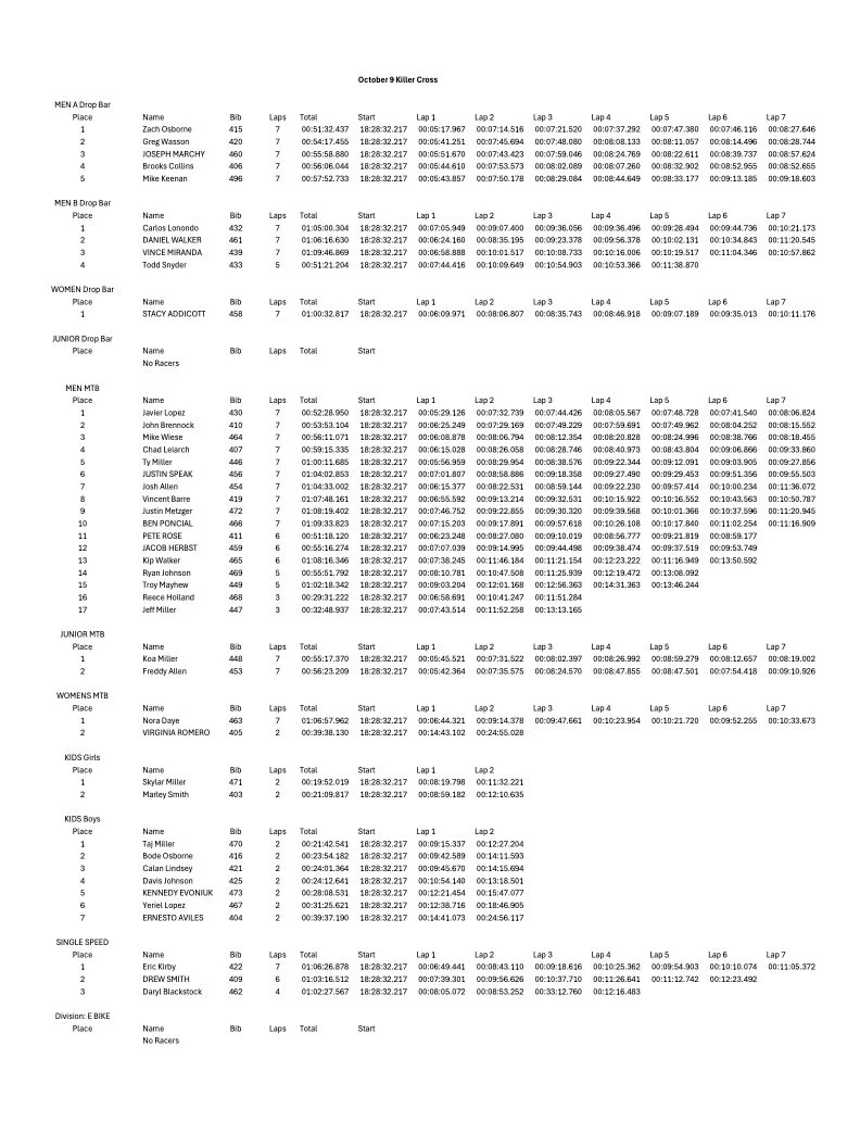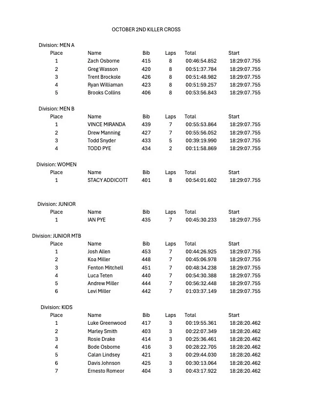 Jax Killer Cross Results